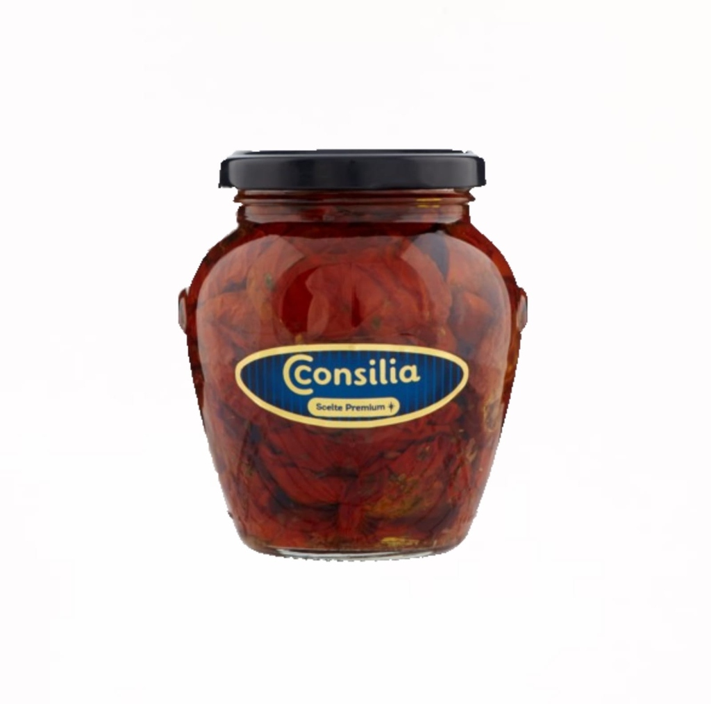 Dried tomato (55%), sunflower oil, wine vinegar, capers, salt, garlic, parsley, aroma, chilli pepper, acidity regulator: citric acid, antioxidant: ascorbic acid