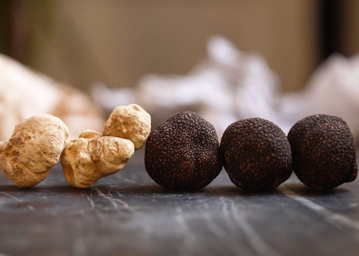 Fresh White Alba Truffle. Uncinato Black Truffle.
