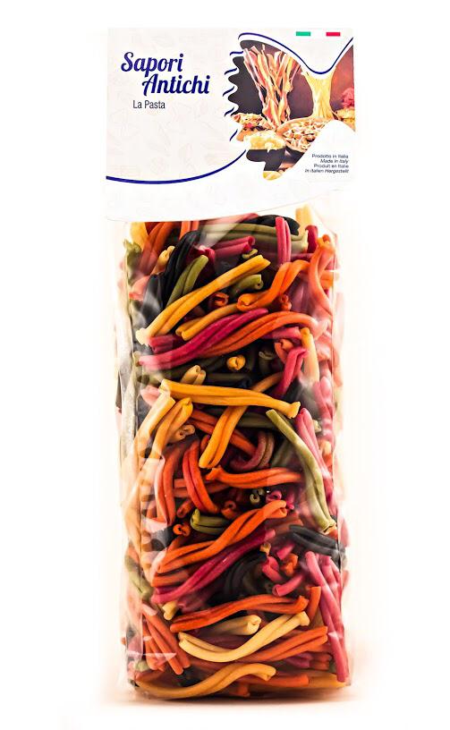 durum wheat semolina, water, beetroot, spinach, turmeric, cuttlefish ink (sepa officinalis, salt), natural paprika flavor